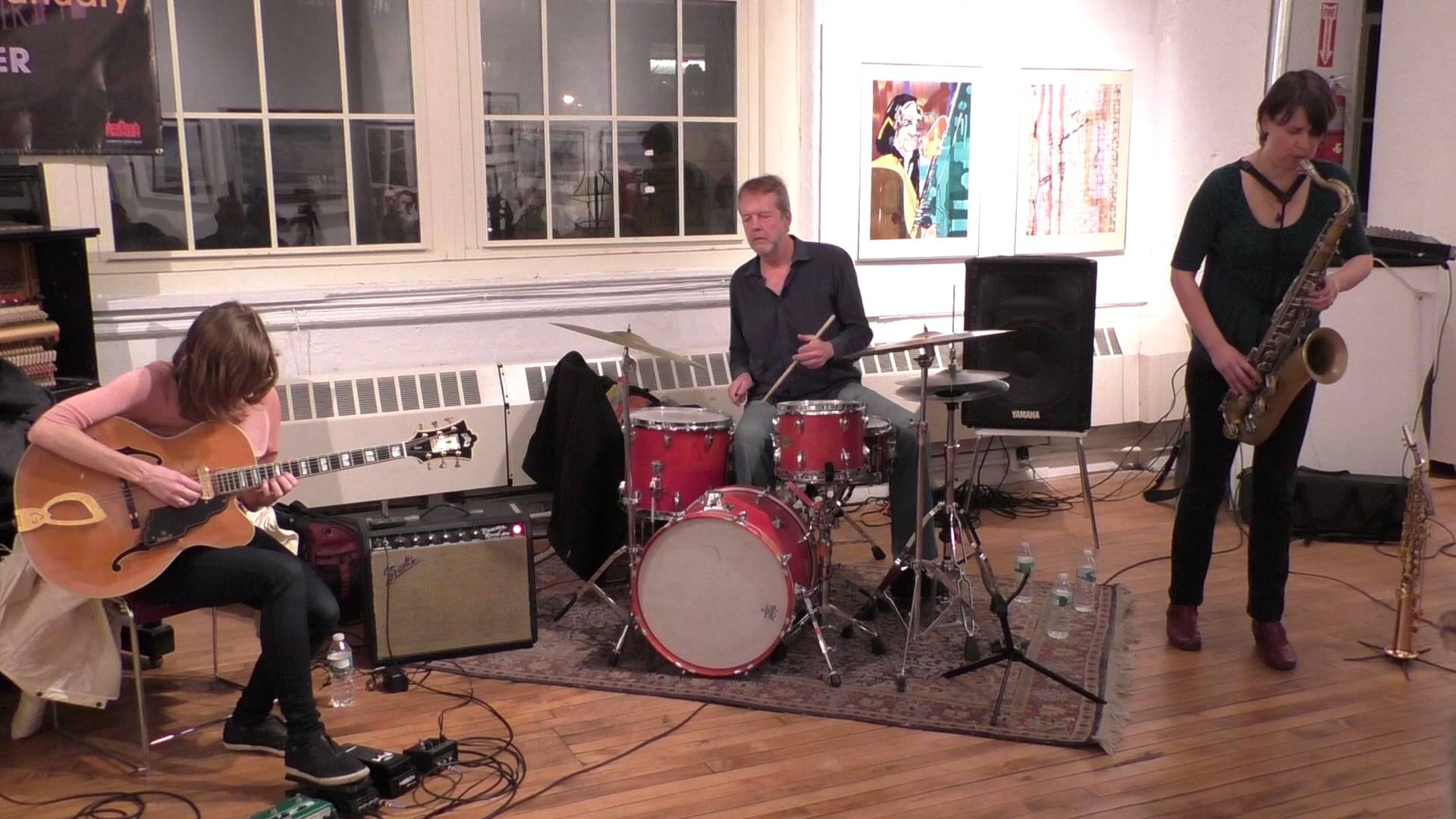 Kljub nekoliko nekonvencionalnejši kombinaciji inštrumentov, trio namreč zaseda bobne, električno kitaro in saksofon, bend zveni spoštljivo do jazz zapuščine in se ne zmeni preveč za modno vključevanje modernih elektronskih aparatur v sicer že tako ali tako elektro akustični svet sodobnega jazza. Edina, ki zares upravlja z električnim tokom, če odštejemo mimobežno manipuliranje mikrofonskega feedbacka saksofonistke, je Mary Halvorson na kitari. Ta je imela s seboj skromen nabor efektov, katere je tehtno uporabila za večinoma barvanje zvoka, odmeve, ter vijugasto manipulacijo višine posameznih tonov. Kljub širokemu zvočnem spektru, ki ga je s svojo votlo električno kitaro in peščico efektov vihtela, pa v širši sliki ni pretirano izstopala, zakar zasluge lahko pripišemo saksofonistki Ingrid Laubrock. Halvorson je na kitari brez dvoma prispevala h marsikateremu preobratu v atmosferi ali poteku skladbe. Od perkusivno razpršenih tonov, basovske opore, zamazanega riffanja in pentljajočega čivkanja, je njeno igranje brez dvoma vestno skrbelo za svežino med igranjem zasedbe. A nikoli ni zares presegla ravnovesja pozornosti z enakovredno izrazno igro saksofonistke, ki je pravtako vijugala med načini izražanja. Prirojena enoglasnost inštrumenta, kot je saksofon, Ingrid Laubrock ni ovirala pri multifrekvenčnih drone spremljavah, ki so navidez spontano vzniknile iz melodičnega fraziranja. Žongliranje s strukturiranimi melodijami in prostorom med njimi bi po pričakovanjih lahko izpadlo v močnem kontrastu s počasnim vlečenjem nizko zvenečih drone gmot, a Ingrid najde organskost v obeh pristopih, kar olajša prehajanje med njima.
